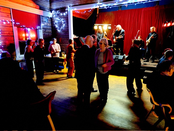 Ja sitten orkesteri päästettiin vauhtiin. Oli kaikille uusi tuttavuus, mutta soitti ja esitti hienoja, rytmikkäitä ja mukaansa tempaavia kappaleita. Tanssilava oli paikoitellen aivan täynnä tanssijoita, tuli rokkia, kantrimusiikkia ja poppia, mukaan mahtui toki hitaampia paritanssikappaleitakin. Nuorisoseura järjesti yleisökilpailuja ja porukalla on show hallussaan, heidän esiintymistään on mukava katsoa. Kaikkiaan koko pikkujoulutapahtuma korosti sitä yhteisöllisyyttä, mitä täältä saarilta löytyy.