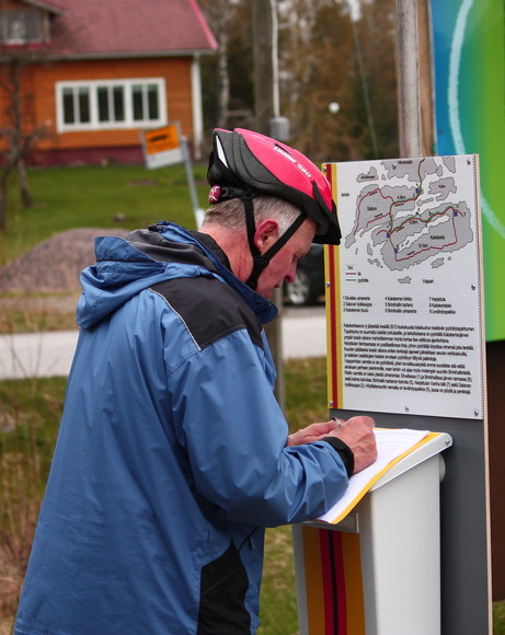 Tarkoituksena on pyöräillä Kakskerranjärven ympäri kesän aikana mahdollisimman monta kertaa. Harjattulan kohdalla pyörätien varrella on postilaatikossa kirja, johon pyöräilijä voi kirjoittaa nimensä joka lenkillä. Lisäksi Ekvallassa sillan tuntumassa sekä Brinkhallin- ja Vapparintien risteyksessä on tapahtumaan liittyvät opaskartat. Kuten tunnettua, Vapparintien varrella ei vielä ole pyörätietä, joten turvallisuussyistä emme suosittele sitä reittiä ainakaan perheen pienimmille, vaan lenkin voi ajaa myös molempiin suuntiin Brinkhallintiellä. Tulostettava ja luettava opaskartta.