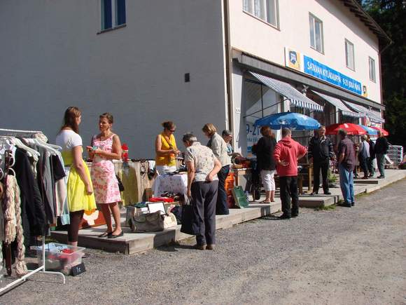 Lauantai 11.8.12 ol tosi kaunis päivä, aurinko paisto ja tuuliki pysys kotonas. Satavan Kyläkaupa pihal ol tosi hyvä pistä kirppis pystysse. Mut silti meil enskertalaissi Kakskertaseuralaissi kirppiksepitäji ol piän pelko siit, et jos meil onki iltapäiväl enemp tavara ko tulles. Näi ei torellakka käyny.