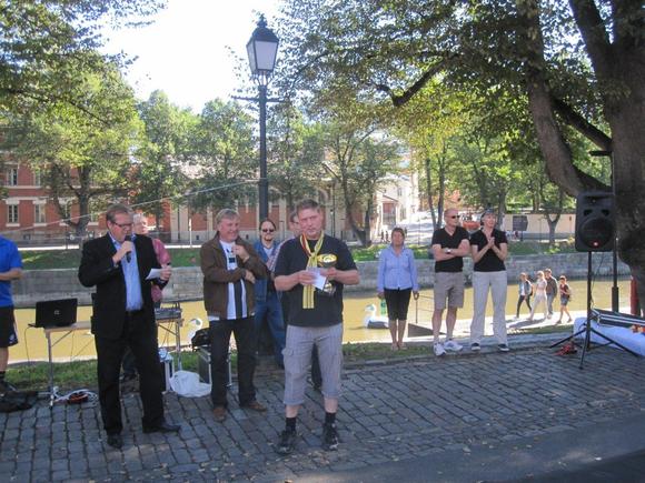 Joukkueen johtaja Sami Ahosmäki vastaanotti kisan palkintopokaalin.
