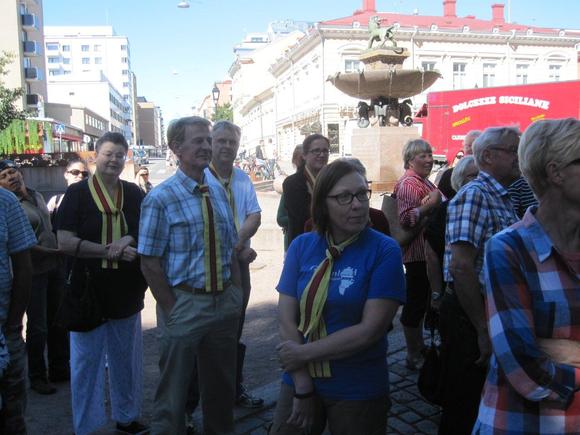 Kakskertalaisia kannustajia Kakskertaseuran väreissä
