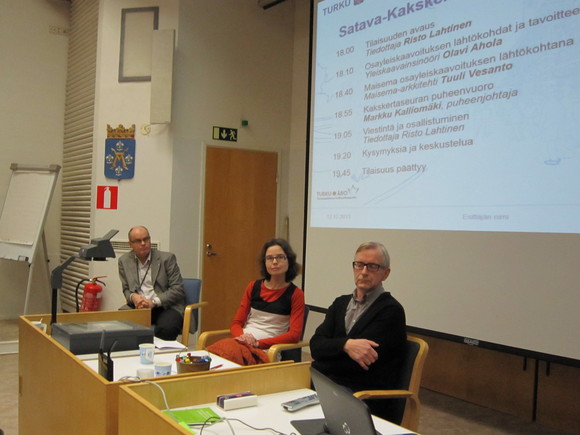 Kaupungin Yleiskaavatoimisto järjesti Satava-Kakskerran osayleiskaavan tavoitteista yleisen kuule-mistilaisuuden Paasikiviopistolla. Paikalle saapui toista sataa oman asuinalueensa tulevaisuudesta kiinnostunutta saarelaista. Kaupungin puolelta illan alustajina toimivat tiedottaja Risto Lahtinen, joka toimi samalla tilaisuuden puheenjohtajana, yleiskaavainsinööri Olavi Ahola ja maisema-arkkitehti Tuuli Vesanto. Asukkaiden yleispuheenvuoron käytti Kakskertaseuran puheenjohtaja Markku Kalliomäki. Kiinteistöliikelaitoksen asiantuntijana paikalla oli myös maanhankintapäällikkö Ilkka Uusi-Uola. Alustajien aiheet käyvät ilmi alla olevasta kuvasta.
