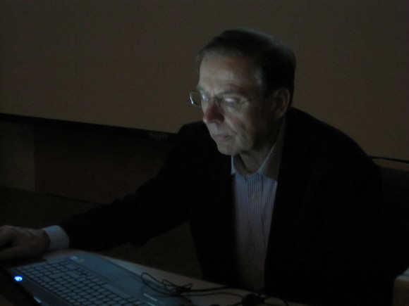 Kuva: Markku Kalliomäki syventyneenä esitykseen