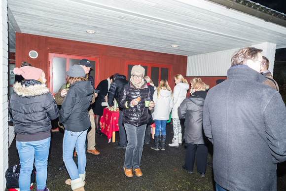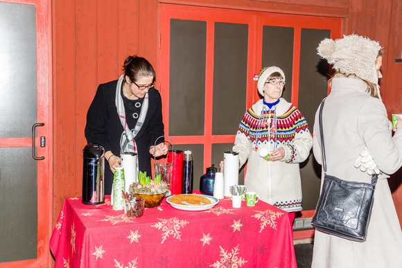Kirkon joulutervehdysten jälkeen siirryttiin ulos huoltorakennukselle, missä Kakskertaseura tarjosi paikalle tulleille glögiä ja pipareita.